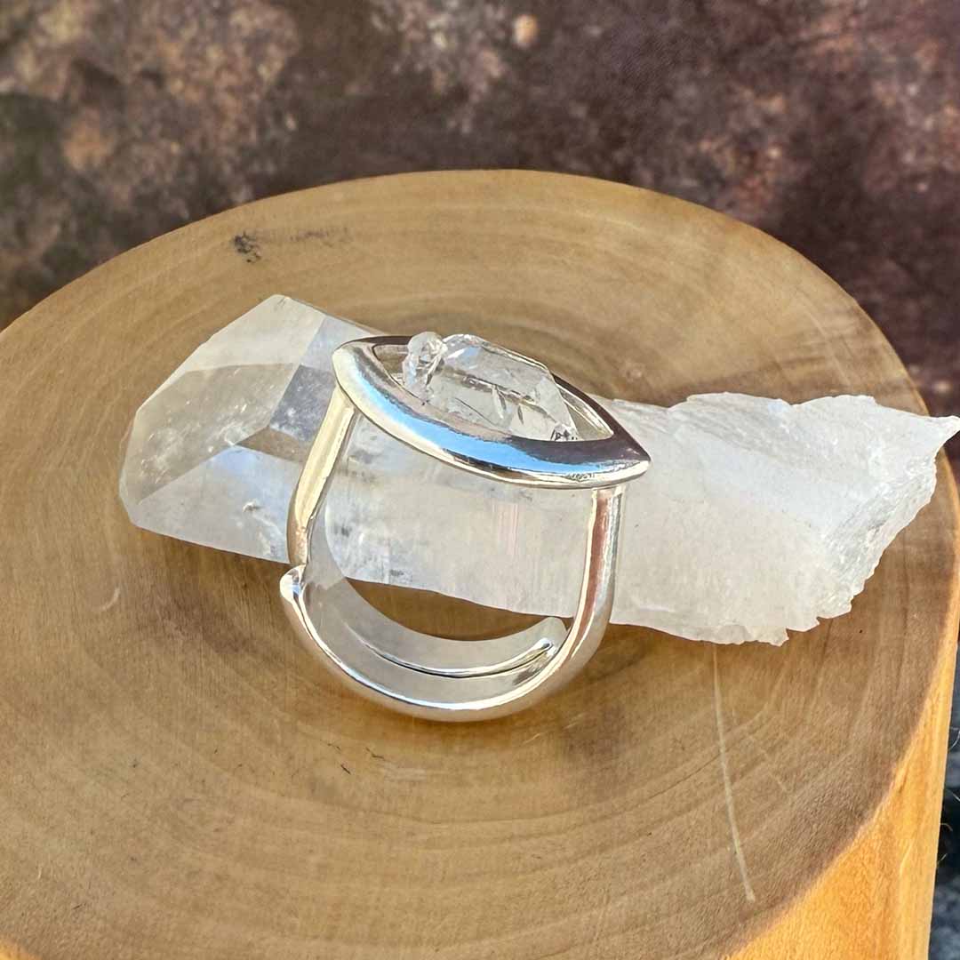 Anillo Ajustable de Plata 950 con Cuarzo Diamante Herkimer Engastado en Ojiva