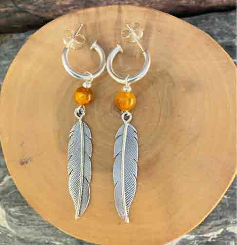 Aros Argollas y Plumas de Plata 950 con Ámbar