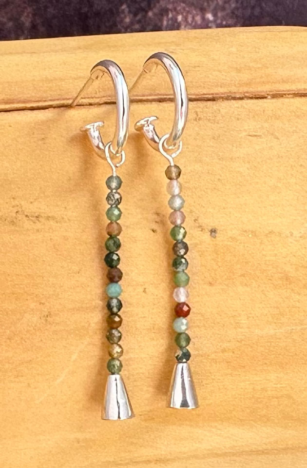 Aros Campanita con Alambre Plata 950 y Mostacillas de Ágata