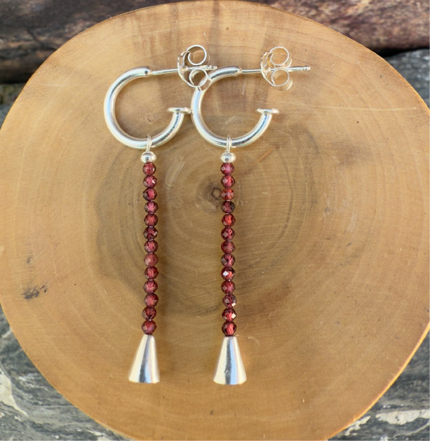Aros Campanita con Alambre Plata 950 y Mostacillas de Granate