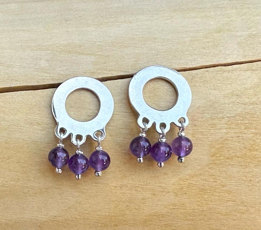 Estos Aros van directo a el lóbulo con un vástago soldado a un Circulo de plata 950 de 1,4cm de diametro que sumado a las piedrecitas da un largo total de 2,5cm.