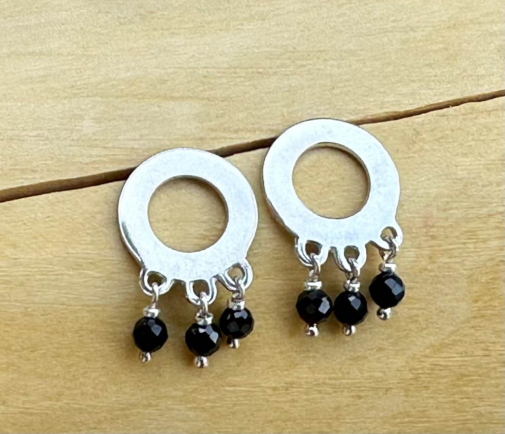 Aros Círculo de Plata 950 con 3 Piedras Turmalinas Negras