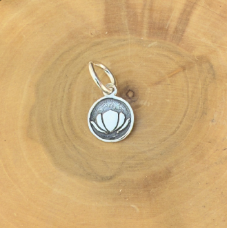 Medalla Flor de Loto mini de 1 cm de diámetro. Hecha de Plata 950.