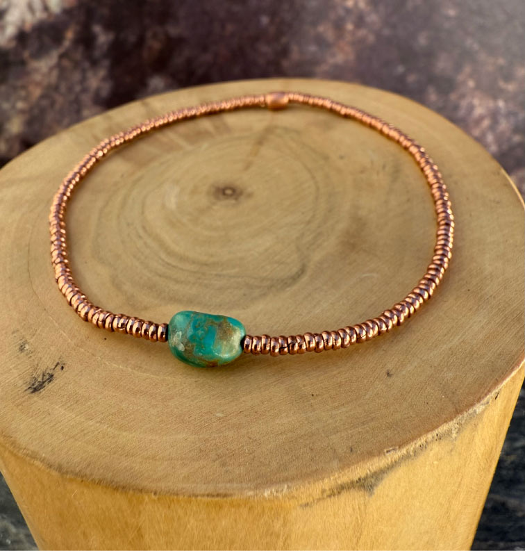 Pulsera Elástica con Mostacillas de Cobre y Turquesa