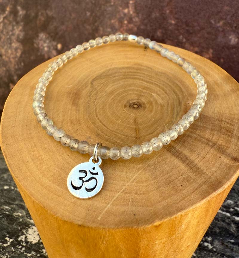 Pulsera Elástica Om Plata 950 y Mostacillas de Labradorita